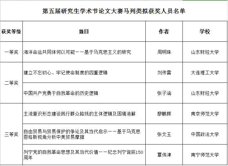 2020骞�6鏈�5鏃ワ紝灞变笢璐㈢粡澶у绗簲灞婄爺绌剁敓瀛︽湳鑺傜郴鍒楀ぇ璧涙嫙鑾峰鍚嶅崟鍏ず锛屾垜闄�18绾ф濇兂鏀挎不鏁欒偛涓撲笟鍛ㄦ槑鐝犲悓瀛︾殑璁烘枃銆婃捣娲嬪懡杩愬叡鍚屼綋浣曚互鍙兘鈥斺斿熀浜庨┈鍏嬫濅富涔夌殑鐮旂┒銆嬪枩鑾疯鏂囧ぇ璧涢┈鍒楃被涓绛夊锛�18绾ч┈鍏嬫濅富涔変腑鍥藉寲鐮旂┒涓撲笟寮犲瓙娑电殑璁烘枃銆婁腑鍥藉叡浜у厷鍕囦簬鑷垜闈╁懡鐨勫巻鍙查昏緫銆嬪枩鑾疯鏂囧ぇ璧涢┈鍒楃被浜岀瓑濂栵紝杩欐槸瀵逛粬浠鏈啓浣滃姛搴曠殑鑲畾鍜岄紦鍔憋紝鍚屾椂涔熸縺鍙戜簡鎴戦櫌鐮旂┒鐢熸姇韬鏈啓浣溿佽繘琛屽鏈爺绌剁殑绉瀬鎬с�
