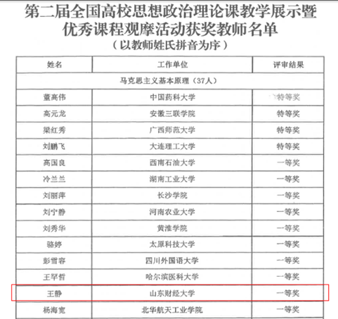 我院教师王静荣获第二届全国高校思政课教学展示暨优秀课程观摩活动一等奖-山东财经大学马克思主义学� <#webadvjs#>