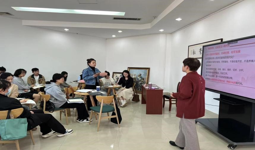 为学习贯彻党的二十大精神,进一步推进学习贯彻习近平新时代中国特色社会主义思想主题教育,提升青年学生的理论修养、思想政治觉悟�4�26日上午,马克思主义学院在图书�616青马书社活动室举办了以“中国式现代化的历史脉络和科学内涵”为主题的读书沙龙活动。本次读书沙龙活动由青马书社指导教师王静主持,邀请到毛玉美教授领读,吸引了来自马克思主义学陀法学院、计算机科学与技术学陀统计与数学学院、艺术学院等50余位研究生、本科生参与活动并积极发言�