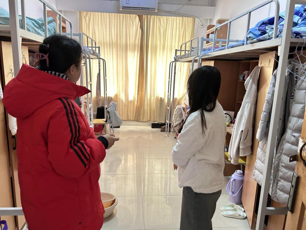 “第一课”结束后�高老师对研究生宿舍进行安全检��排查安全用电隐患,对宿舍内物品摆放提出了整改意见和要求,提醒同学们要居安思危�防患未然�