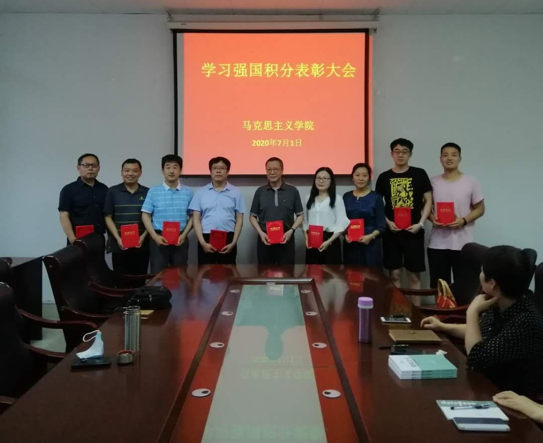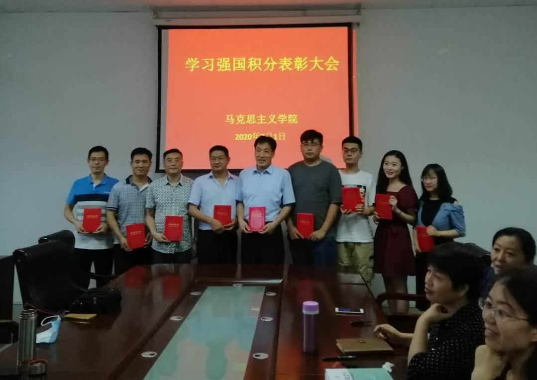 涓轰簡鎺ㄨ繘鈥滃涔犲己鍥解濆涔犳椿鍔ㄦ繁鍏ュ紑灞曪紝鍏呭垎鍙戞尌鈥滃涔犲己鍥解濆钩鍙板湪鍏氱殑寤鸿鍜屾濇斂璇炬暀瀛﹀伐浣滀腑鐨勭Н鏋佷綔鐢紝椹厠鎬濅富涔夊闄㈠厷濮斿喅瀹氬鈥滃涔犲己鍥芥荤Н鍒嗗墠鍗佸悕鈥溿佲滃涔犲己鍥藉勾搴︾Н鍒嗗墠鍗佸悕鈥濄佲滃涔犲己鍥借繘姝ョН鍒嗗墠鍗佷簲鍚嶁濈殑鍚屽織浜堜互琛ㄥ桨銆傞殢鍚庯紝鑾峰鍚屽織鍒嗕韩浜嗚嚜宸辩殑瀛︿範鎰熸偀涓庡涔犵粡楠岋紝骞跺鍦ㄦ暀瀛︿腑浣跨敤鈥滃涔犲己鍥解濆钩鍙扮浉鍏宠祫婧愮殑鏂规硶鍜屾妧宸ц繘琛屼簡浜ゆ祦鎺㈣銆傛渶鍚庯紝椹厠鎬濅富涔夊闄㈠厷濮斾功璁伴儎鎹嶇儓琛ㄧず锛屽笇鏈涘叏闄㈠悓蹇椾互鑾峰浜哄憳涓烘鏍凤紝鍔犲己瀛︿範锛屼笉鏂彁楂樿嚜韬斂娌荤礌璐ㄥ拰鏂囧寲绱犲吇銆傚苟杩涗竴姝ユ寚鍑猴紝鎴戦櫌灏嗙户缁妸鈥滃涔犲己鍥解濈殑瀛︿範鍜屼娇鐢ㄥ綋浣滀竴椤归暱鏈熶换鍔℃潵鎶擄紝鐐圭噧骞垮ぇ鍚屽織鐨勫涔犵儹鎯咃紝浠庘滄瘮绉垎鈥濆彉涓衡滄瘮鏀惰幏鈥濓紝褰㈡垚浜轰汉鍦ㄥ銆佸鏈夋墍鑾风殑鑹ソ姘涘洿銆�