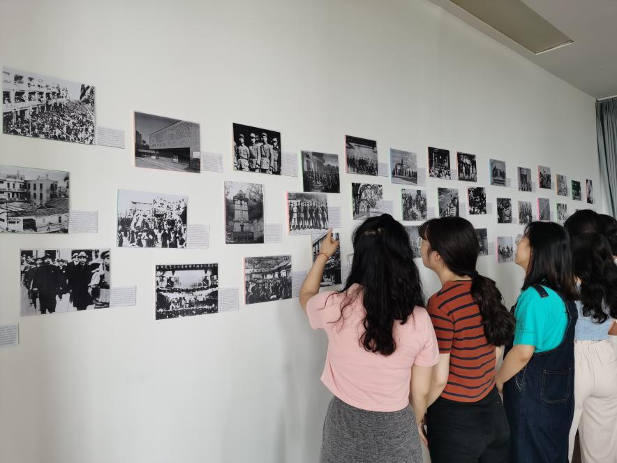 寮灞曠涓澶╋紝灏辨湁涓嶅皯鍚屽鍜岃佸笀鍓嶆潵瑙傜湅锛岄忚繃鐝嶈吹鐨勮佺収鐗囷紝閲嶆俯鍏氱殑鍘嗗彶鍙戝睍銆傚弬瑙備腑鏈変竴浣嶅悓瀛︿妇鐫鎵嬫満鎷嶄笅浜嗘瘡涓寮犲浘鐗囷紝浠栬锛岃繖鏄竴娈佃姘歌繙閾鐨勫巻鍙诧紝杩欐牱鐨勫睍瑙堢壒鍒湁鎰忎箟锛岃繖姣旀暀绉戜功涓婄殑鏂囧瓧鏇寸敓鍔紝涔熸洿璁╀汉涓轰箣鍔ㄥ銆�
