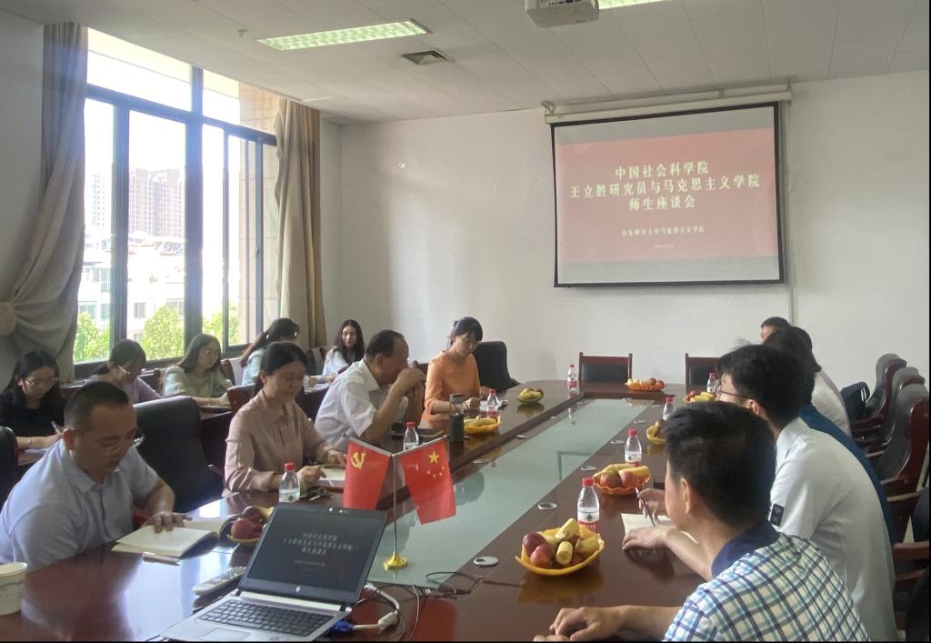 6�13日上午,中国社会科学院哲学研究所党委书记、副所长王立胜研究员应邀在学院会议室参加马克思主义学院师生座谈会。学院党委书记石伟、院长徐莹以及学院领导班子成员出席,学院部分教师和研究生到场参加,会议由徐莹院长主持�