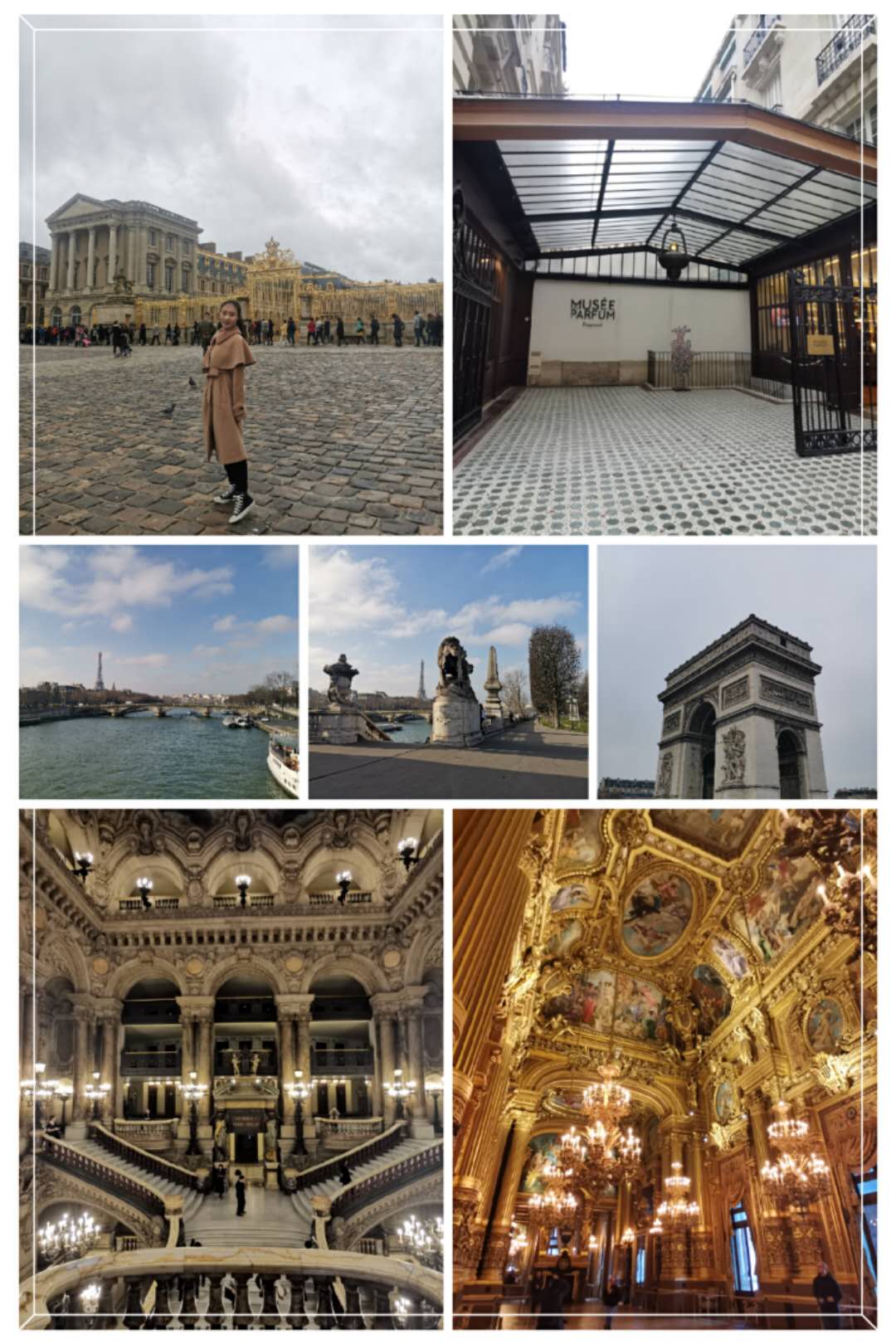 世界上最大的卢浮宫博物馆是那样的壮观,透明的外观体现这这座城的时尚,进入博物馆又感受到了这座城的内涵,蒙娜丽莎、胜利女神、断臂维纳斯,当课本上经典的艺术作品一件件呈现在面前,才能真正体会到艺术的魅力。象征着爱情的埃菲尔铁塔是那样的感人,在“最接近天堂”的铁塔顶端,我们感受到了艾菲尔对亡妻忠贞不渝的爱,体会到了这座钢铁建筑背后的柔情。位于香榭丽舍大街的凯旋门是那样雄伟,四角的浮雕分别代表了出征、胜利、和平和抵抗,更体现出了拿破仑对胜利的尊重与渴望。香榭丽舍大街是那样的繁华,歌词中的场景变成了现实,当你捡起那片香榭的落叶,浪漫便由心而生,这也许是很多女生的梦。蒙马特高地的风景是那样的迷人,《天使爱美丽》的咖啡馆出现在眼前,电影场景一下子变成了现实,我们仿佛剧中的女主角,俯瞰着全巴黎的美景,仰望着圣心堂与蓝天白云共汇的美景。十三区的街头艺术是那样的独特,每走一步都可以发现一处别致的涂鸦,在这些五彩缤纷的街道背后一定有许多有趣的灵魂,他们都有一支神奇的画笔,为这座城赋予了特殊的气息。如今的巴黎圣母院是那样令人惋惜,没有亲眼见过大火前的全貌,希望不久后能看到它涅槃重生。远郊的凡尔赛宫殿依旧散发着耀眼的光芒,太阳照射下的属于太阳神的宫殿美轮美奂,哪怕只是一间卧室,都奢华至极,还有美丽的花园,中和了建筑的刚,为整体增加了一份灵动的美�
