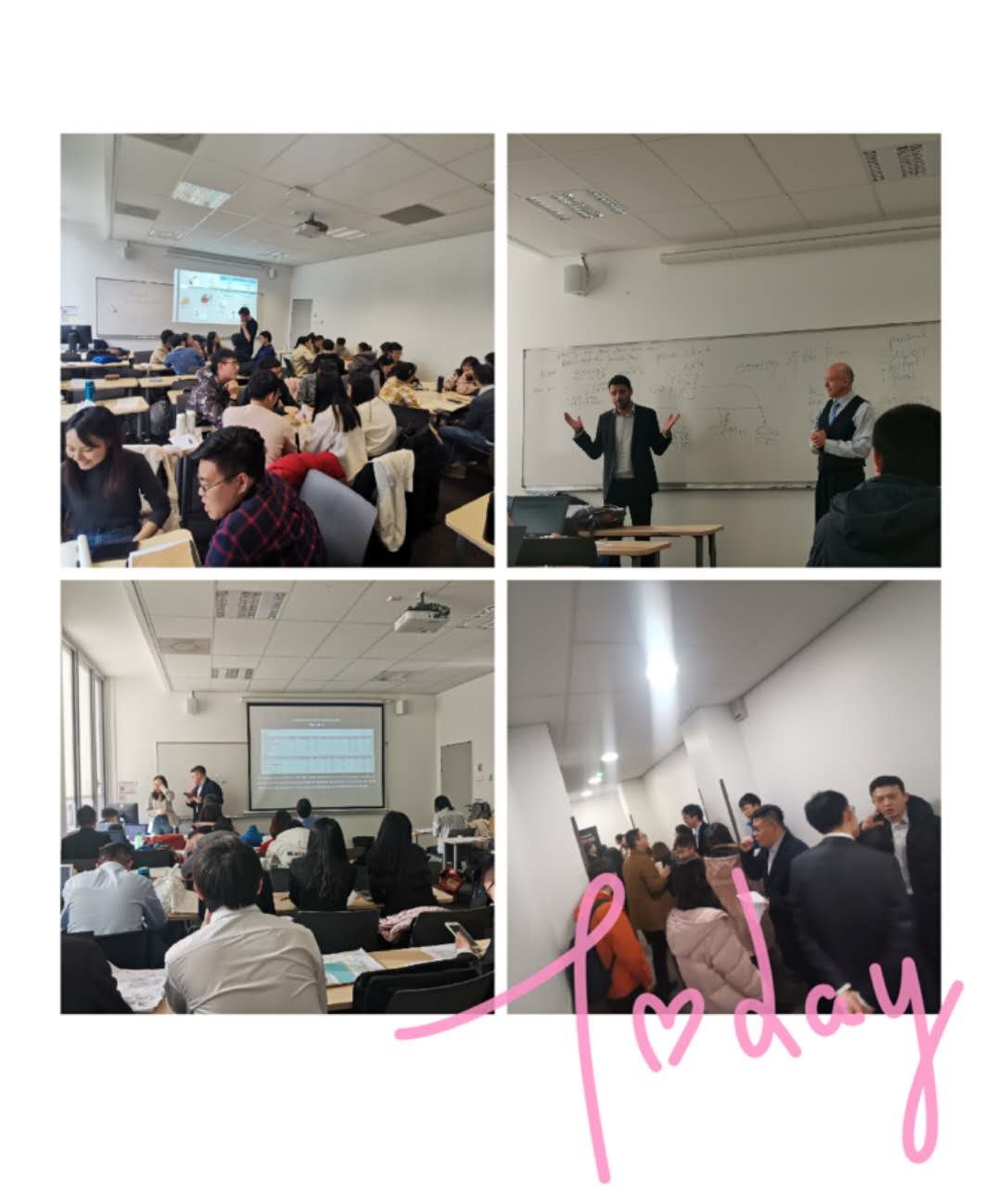 三个月的访学,我感受着中法两国不同的授课模式,也为学好专业课提供了新的思路。第一,敢想敢做,是创造无限可能的前提基础。我们永远不知道自己的有多大的潜力,能力是靠不断地努力积累而来的,但它更是因为勇敢迈出第一步才变为可能,在课堂上大胆用英语去讲述所思所感,从第一次的羞涩到之后的落落大方,我们在勇敢中共同成长。第二,团结协作,是创造无限可能的必要条件。法国老师非常喜欢用小组合作的形式来检验学习成果,每一次的presentation都让我们深深感受到团队的巨大力量,各个小组通过共同实地勘察,资料收集,制作ppt,讲解展示等环节,与老师同学们交流、分享见闻感想,在互动中彼此督促、共同提高。第三,寓教于乐,是创造无限可能的有效途径。在法国,即使是在研究生课堂,老师仍喜欢通过一些游戏来巩固课堂知识。法语老师不止一次拿出他的小卡片,让我们在游戏中学造句,寓教于乐的小游戏释放了学生的紧迫感,同时也巩固了我们对重要知识的理解与记忆�