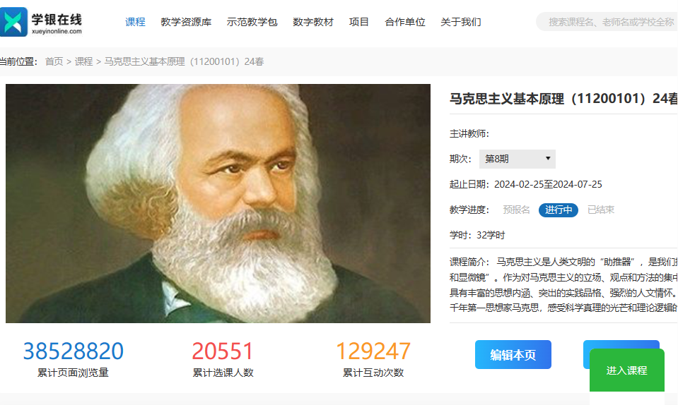 “办好思想政治理论课关键在教师。”课程团队群策群力,整合教材内容,制作完成了一套完整的在线教学课程体系。目前,网上课程视频共计63个,总时�849分钟;课�76个,文档资源22个,测验习题12� 1200 道题,每学期更新完善 10%�开课以来,面向校内外学生完成七学期教学�校内外累计选课 超过2万人,累计有18所学校使用本课程�课程荣获2023年校级教学创新三等奖1项,在《高校马克思主义理论教育研究》《教育评论》等发表教改论文多篇�