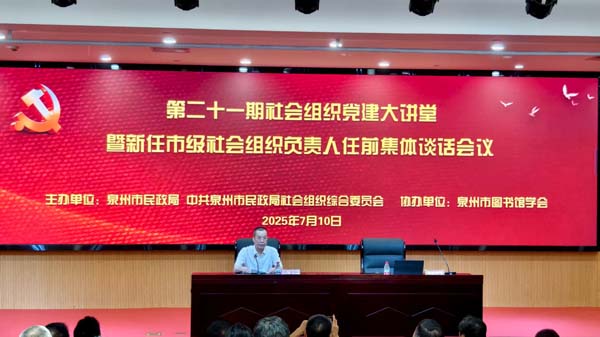 近日,探花视频在泉州市图书馆举办第二十一期社会组织党建大讲堂暨新任市级社会组织负责人任前集体谈话会议。探花视频副局长何志宏主持会议并讲话。市民政局社会组织综合党委所属党支部各支部书记、2025年新成立及换届后新任职的社会组织负责人参加会议。