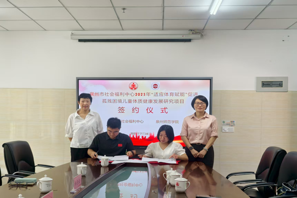 近日,泉州市社会福利中心与泉州师范学院达成战略合作,举行“适应体育赋能”促进孤残困境儿童体质健康发展研究项目签约仪式,通过发挥高校的专业优势与福利中心的实践平台优势,实现资源共享、互利共赢。