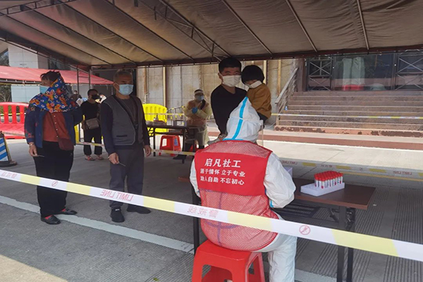 为进一步加强疫情防控工作,充分发挥街道社工站统筹协调和模范作用,丰泽区民政局、丰泽区社会工作服务指导中心第一时间动员指导各街道社工站、辖区社工机构、社会组织积极参与疫情防控工作,携手多方力量全力筑牢疫情“防护网”。截止3月30日,辖区共组织近1800名社工和志愿者参与到疫情防控中,密切配合各街道、社区开展居民全员核酸检测、居民信息登记、居家隔离监测、重点人员核查等各项工作,用实际行动构筑起疫情防控的“铜墙铁壁”。其中清源街道社工站先后配合社区完成十余次全民核酸检测服务工作。